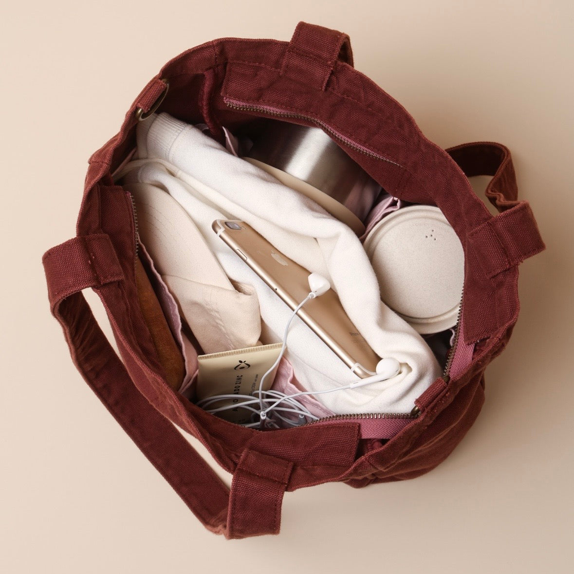 The Midi might sit between sizes, but it delivers full Pocket Tote magic. Everything has its place. No more digging for your phone while your coffee tips sideways. No more keys playing hide and seek at the bottom.