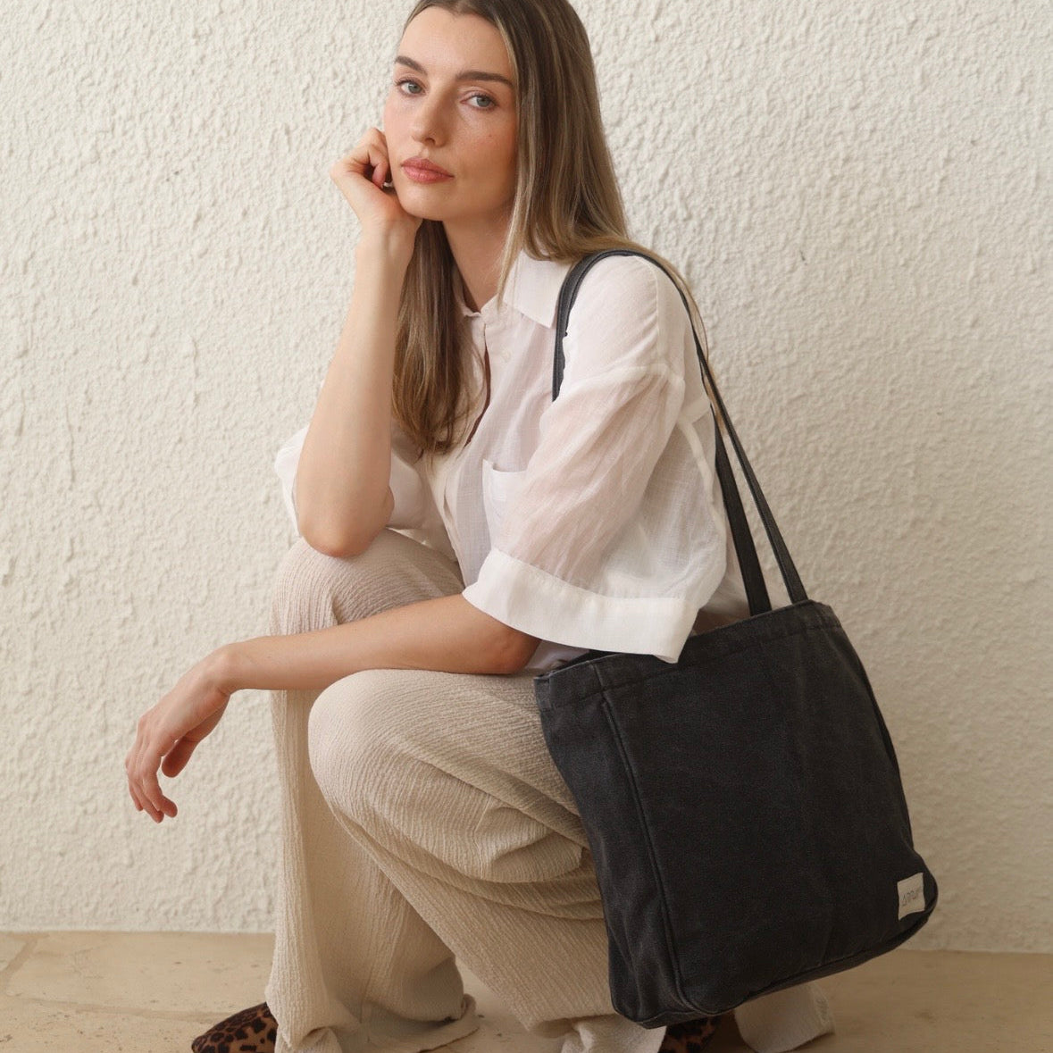 Midi Pocket Tote - WASHED BLACK