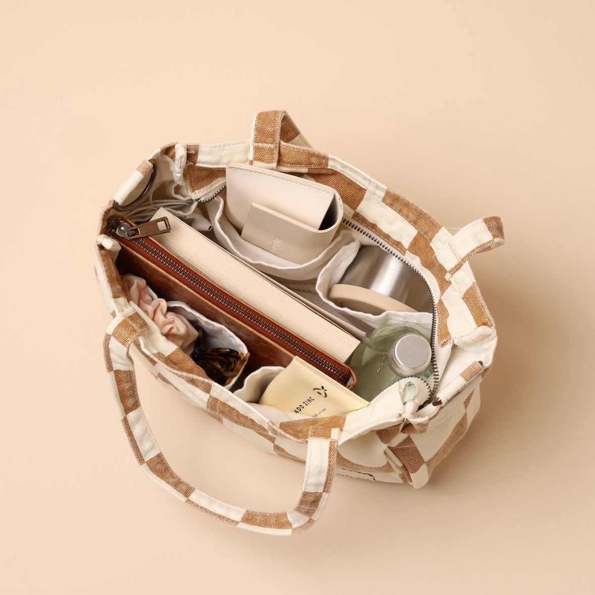 Mini Pocket Tote - TAN CHECK