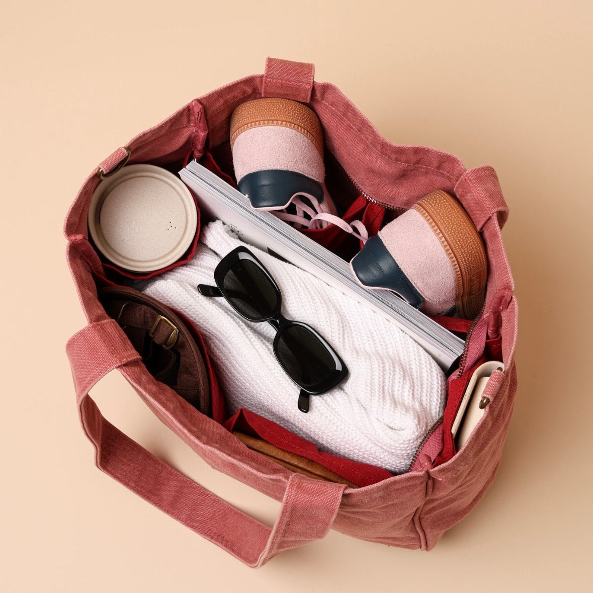 You’ll soon realise that your Pocket Tote is not just a bag, it’s a trusty assistant who helps you get things organised. No more sifting through stuff, blindly trying to find the right water bottle, sunscreen, hand sanitiser, headphones, wipes or the keys you can hear jingling but can never seem to put your hand on.